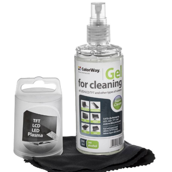 Унікальна формула очисного гелю ColorWay, що не залишає патьоків і розводів, забезпечуючи антистатичне й антимікробне очищення. Густий гель не стікає екраном пристрою, у такий спосіб виключає потрапляння рідини в простір між корпусом і екраном пристрою. Ефективний навіть на повністю вертикальних поверхнях. За допомогою гелю можна безпечно очистити будь-яку техніку, чи то плазмовий телевізор, чи то планшет. Гель має прекрасні гігієнічні характеристики, а також повністю нейтральний запах, без жодних спиртів добавок і розчинників. Економна витрата. Мікрофіброва серветка забезпечує делікатне чищення без подряпин.