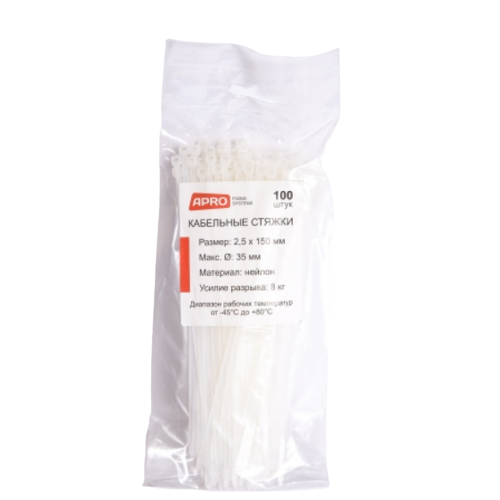 Хомут пластиковий 2,5*150 (3*150)мм універсальний білий 100шт/уп APRO